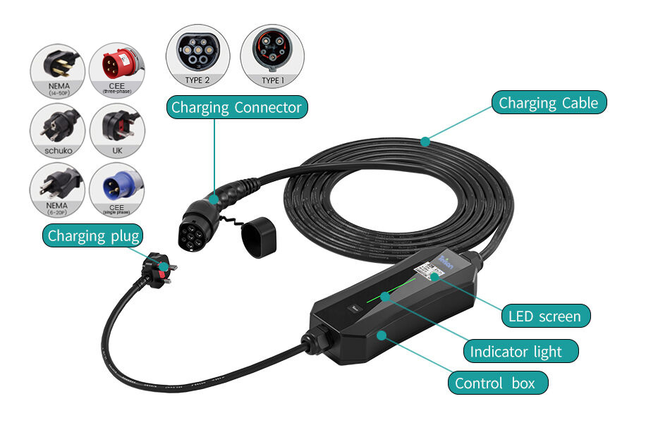 Monitoiminen kannettava EV-laturi täydellä suojalla