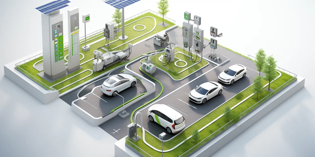 Käyttämällä aurinkosähköpaneeleja rakennusten katoilla ja aurinkovarjoja pysäköintialueilla, energian varastointijärjestelmä konfiguroidaan saavuttamaan "oma kulutus ylijäämäenergian varastoinnilla". Tämä vähentää tehokkaasti latausasemien vaikutusta sähköverkon kuormitukseen.